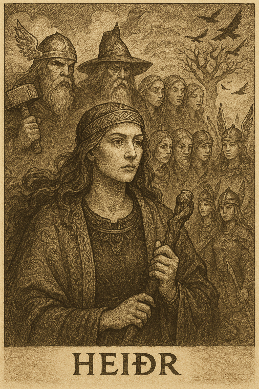 なお、この話は巫女ヴォルヴァの語りという表現もありますが、ヴォルヴァ(völva)は女の予言者のことであり、名ではありません。彼女の名はヘイズル(Heiðr)と考えられており、女神フレイヤと同一視される存在です。
