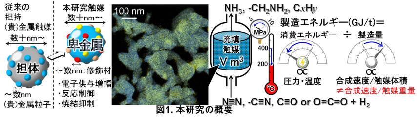 驚くべきことに、100年以上前に開発されたハーバー・ボッシュ法では、数十ナノメートルサイズ(メゾスケールと言います)の鉄粒子からなる古典的な触媒が、今なお第一線で活躍しています。そしてこの触媒は、最新の高価な貴金属触媒と比べても、「触媒の体積あたりの合成速度」という点では依然として優れています。これは、触媒科学にまだ大きな可能性が眠っていることを意味しています。